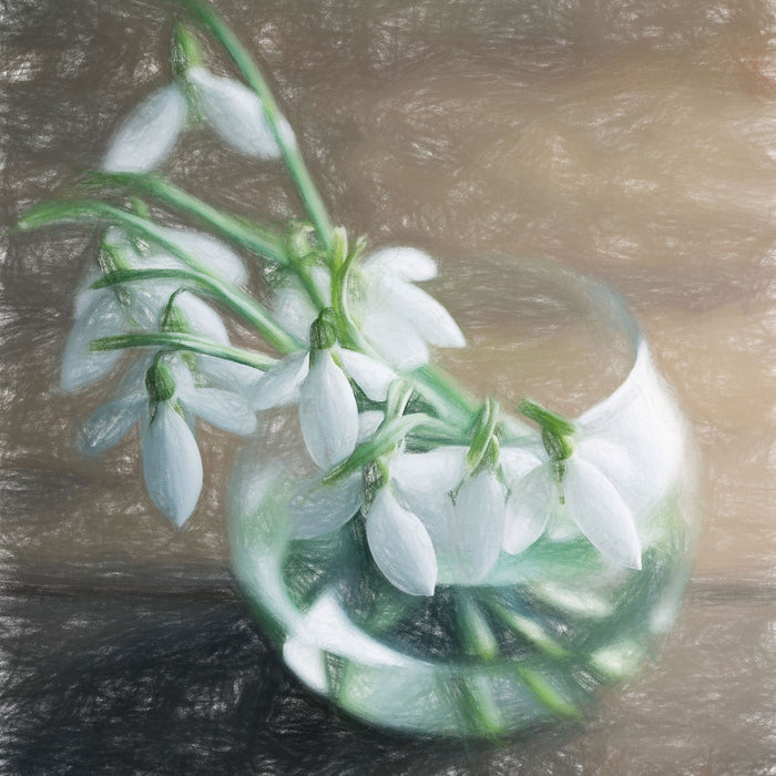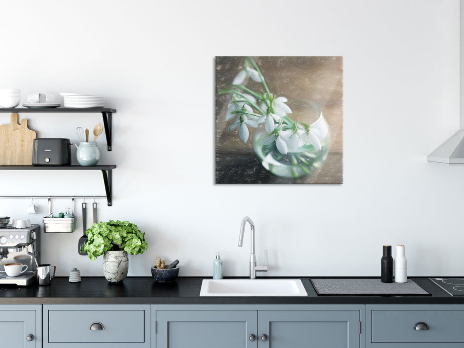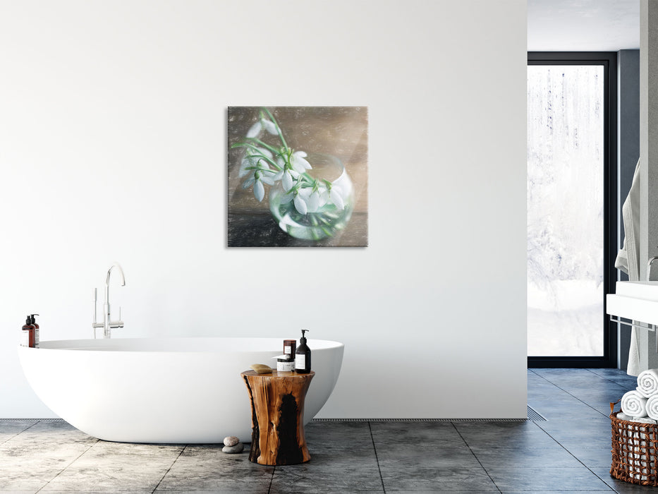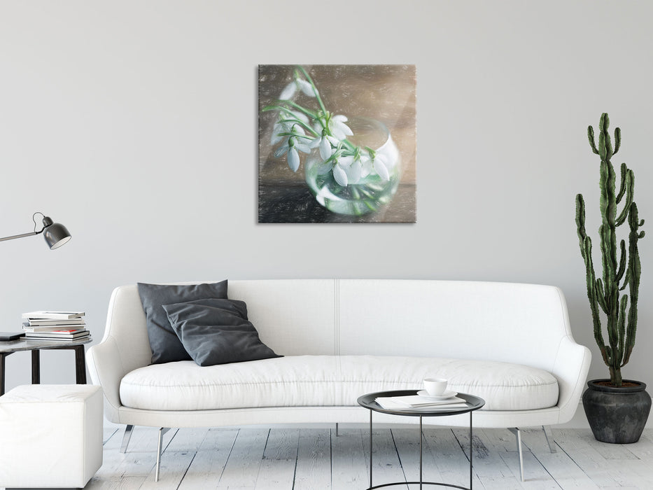 Schneeglöckchen in der Vase, Glasbild Quadratisch