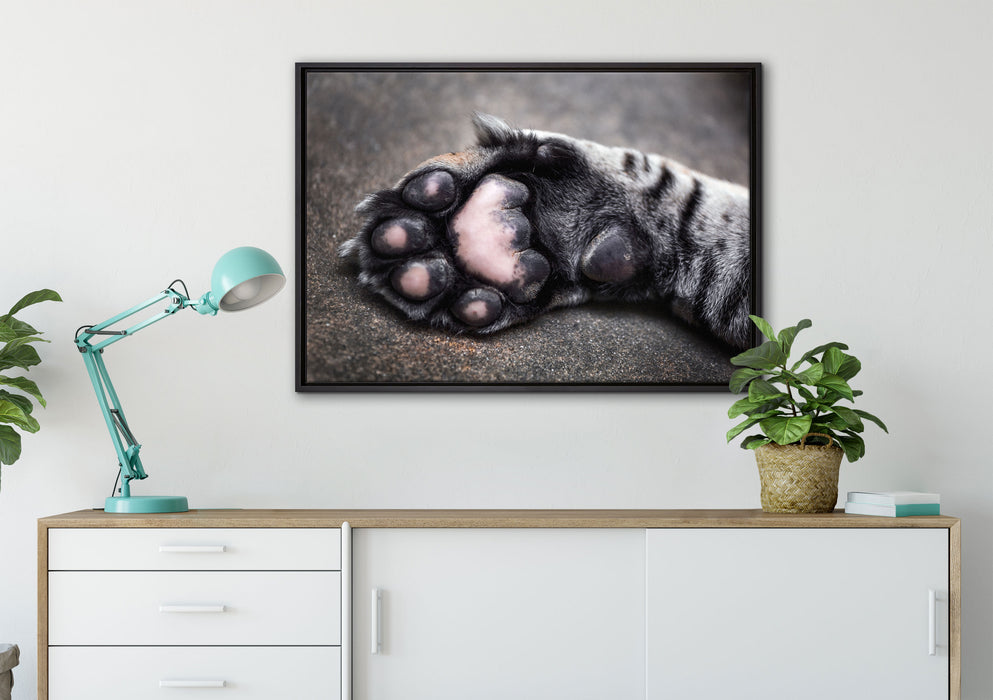 Schöne Katzenpfote, Leinwandbild mit Bilderrahmen