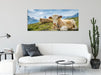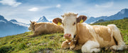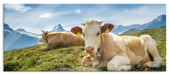 Simmentaler Kühe vor Schweizer Alpen, Glasbild Panorama