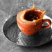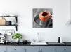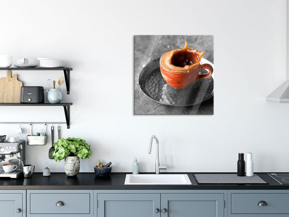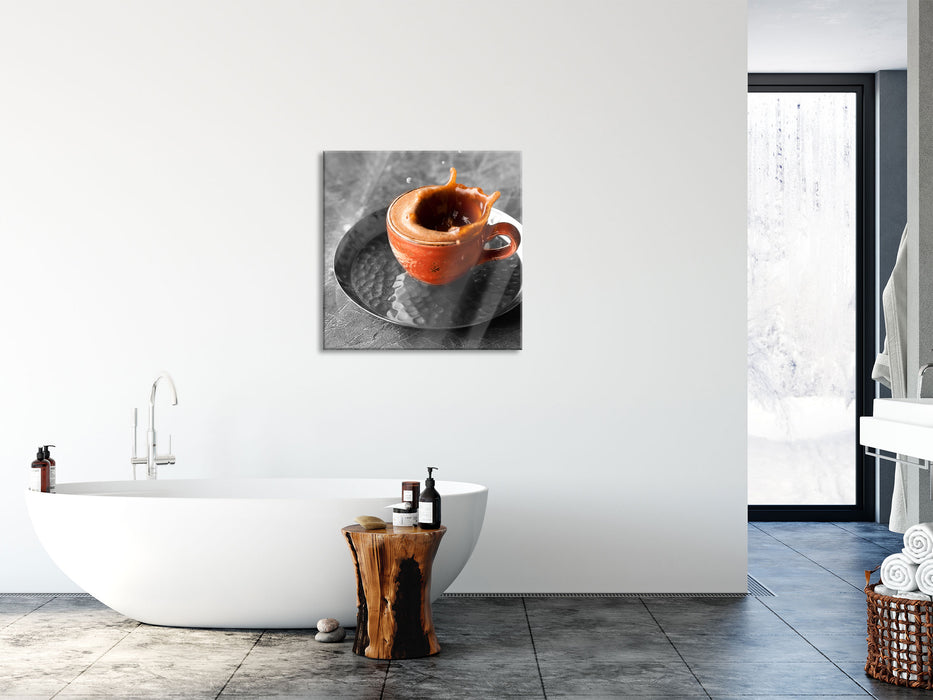 Stück Zucker fällt in Kaffee, Glasbild Quadratisch