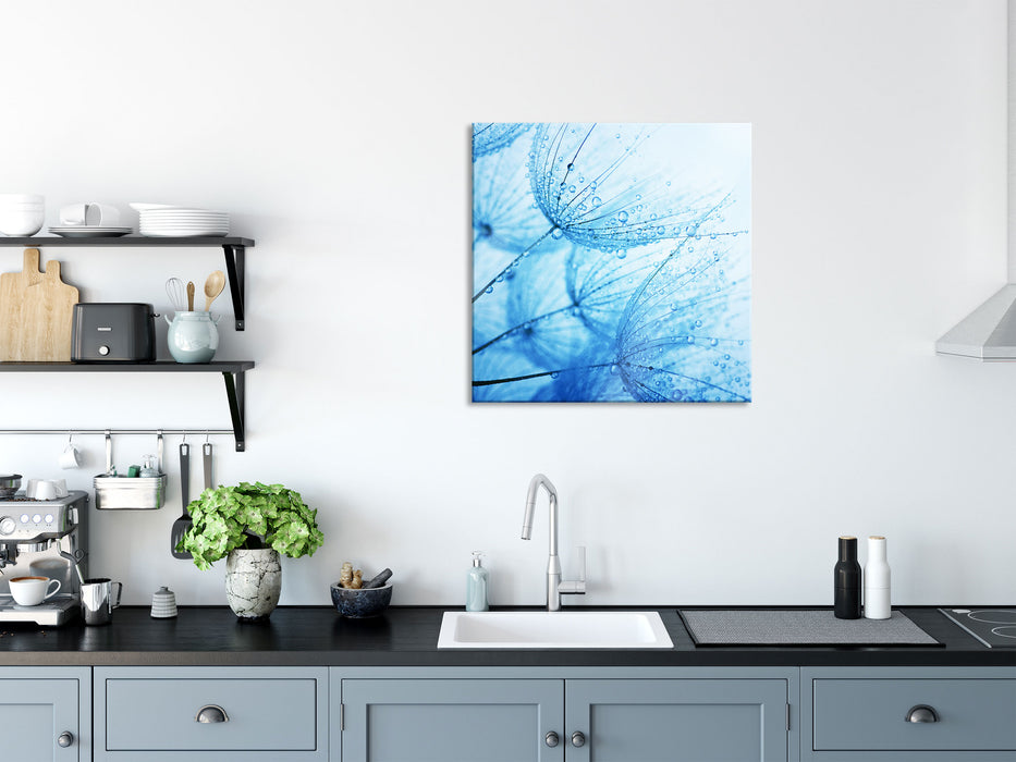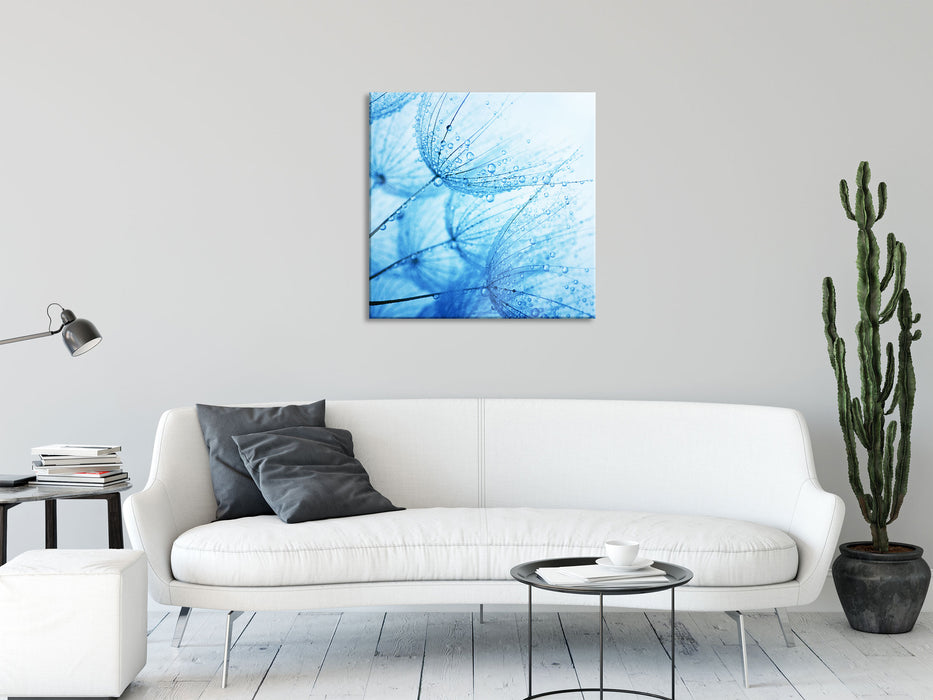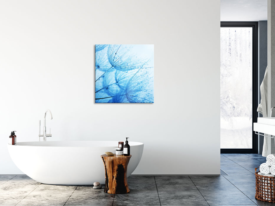 Tropfen bedeckte Pusteblumen, Glasbild Quadratisch