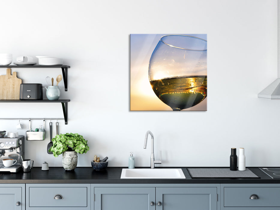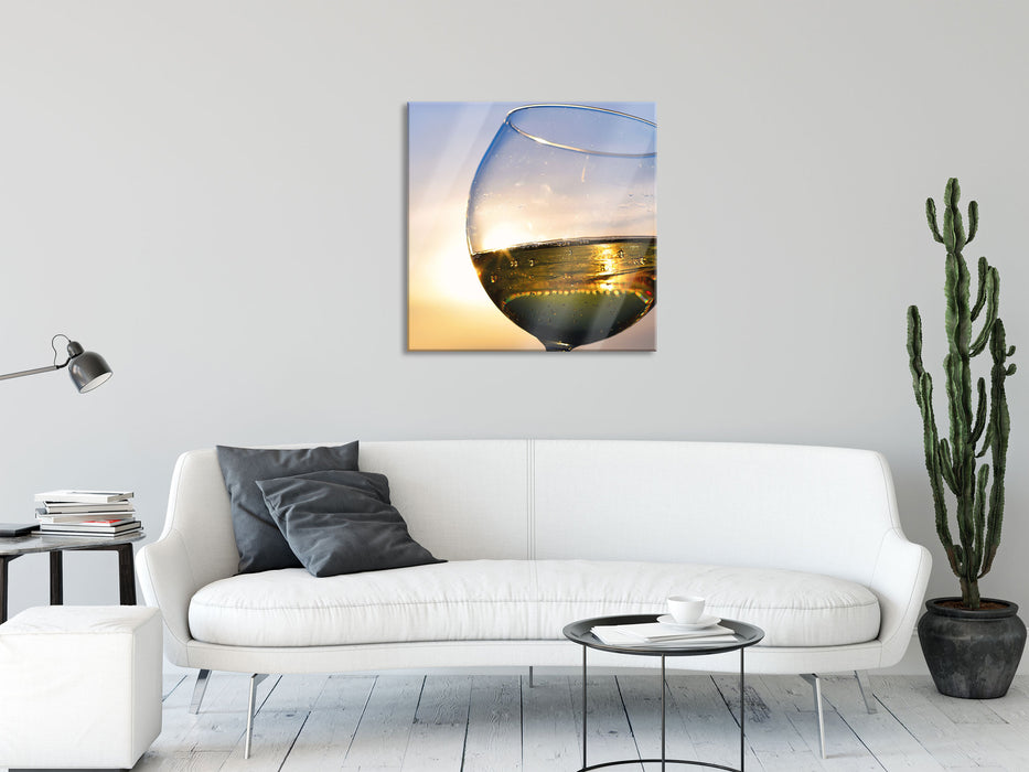 Weingläser Meer, Glasbild Quadratisch